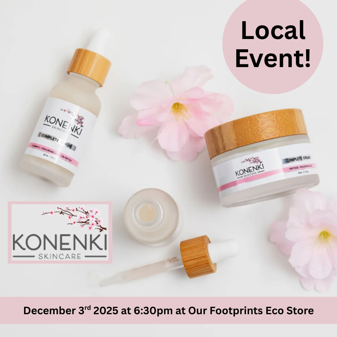We hosted a beautiful evening at Our Footprints Eco Store & Refillery with Alana from Konenki Skincare — a brand created to support women through the powerful, transformative season of perimenopause and menopause. It was an intimate night of connection, skincare education, and exclusive shopping perks! We learned about Konenki’s mission to support aging gracefully, naturally, and confidently . Met founder and beauty expert Alana Palmer, a local Kamloops entrepreneur!